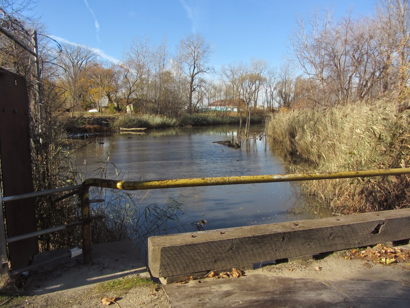 One day in November of 2013 as I was getting my six-layer-with-everything and tin of coffee from Gonella's, I happened to cruise through the Fordson Island neighborhood to see how many new home demolitions Marathon had done since last I drove through this, my favorite neighborhood in the city. Lo and behold, the gate to the bridge was open! I decided to park and walk across it.