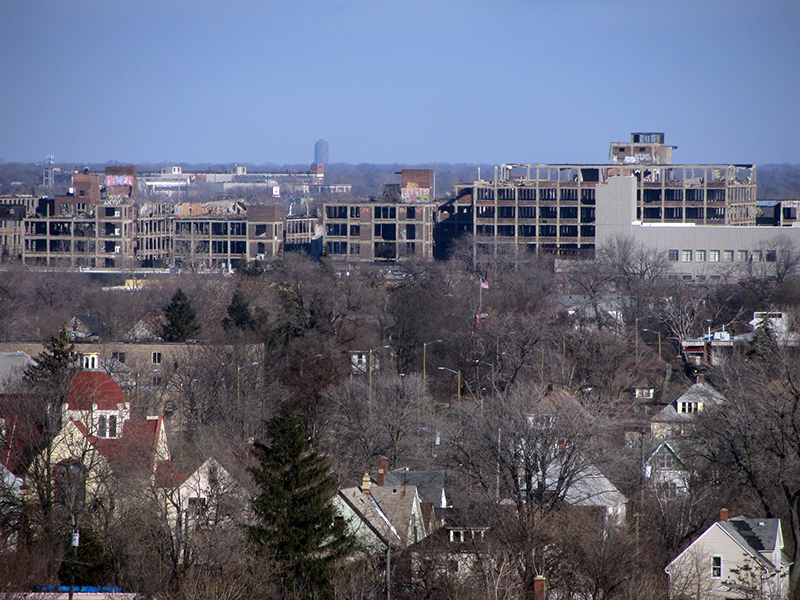 The Packard Plant in the distance: