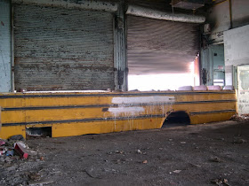 Looks like there may have been a fire here at one time, since every part of the roof except for the trusses and steel framing of the monitors has been eaten away: