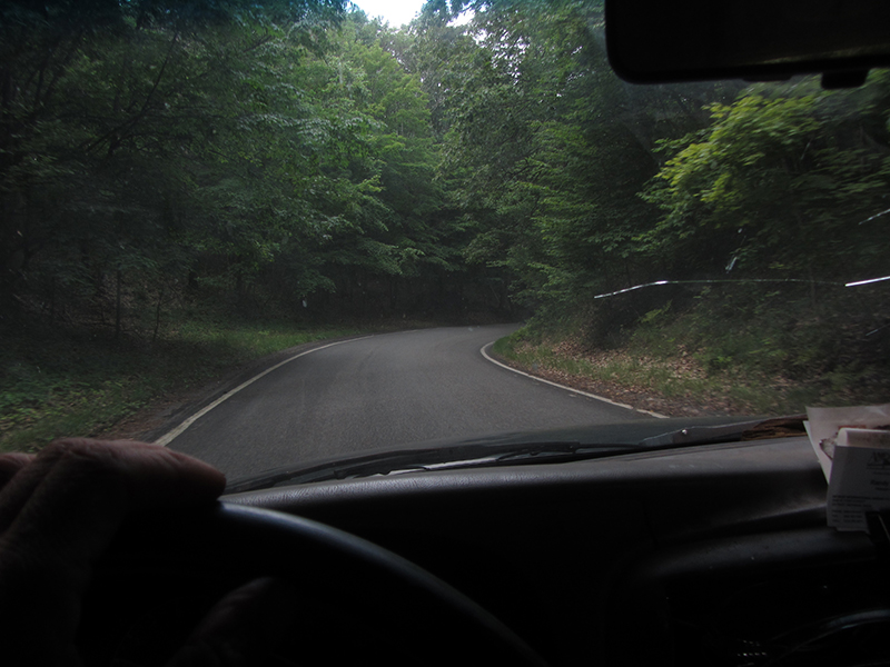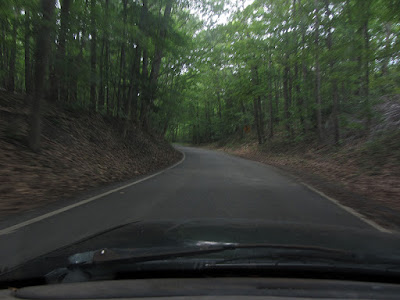 Looking down the hill in these next shots, you can make out the line of the roadway through the trees in the distance: